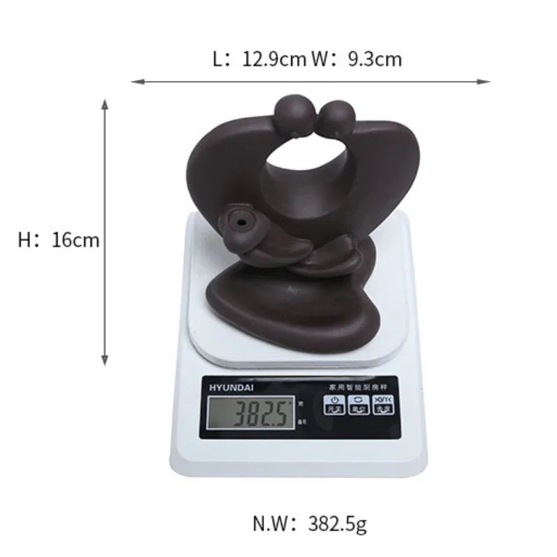 Brûleur d'encens à reflux en cascade en argile violette - Ornements pour la maison en forme de cœur