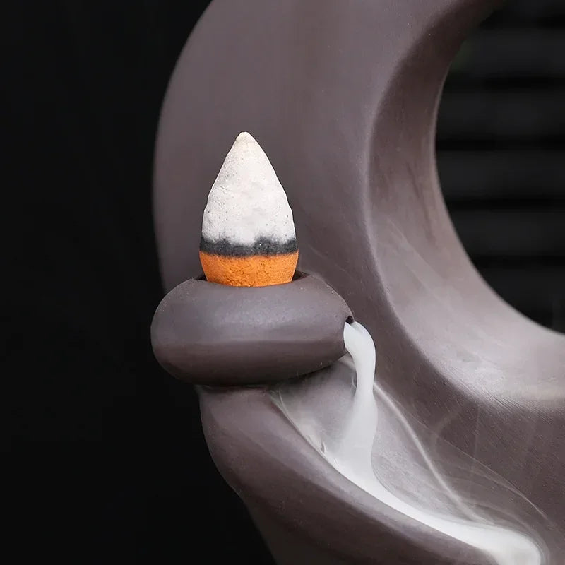 Effet à Reflux Enchanteur : Lorsqu'il est utilisé avec des cônes d'encens à reflux, la fumée s'écoule délicatement en cascade, créant une atmosphère magique et apaisante qui favorise la méditation et la relaxation.