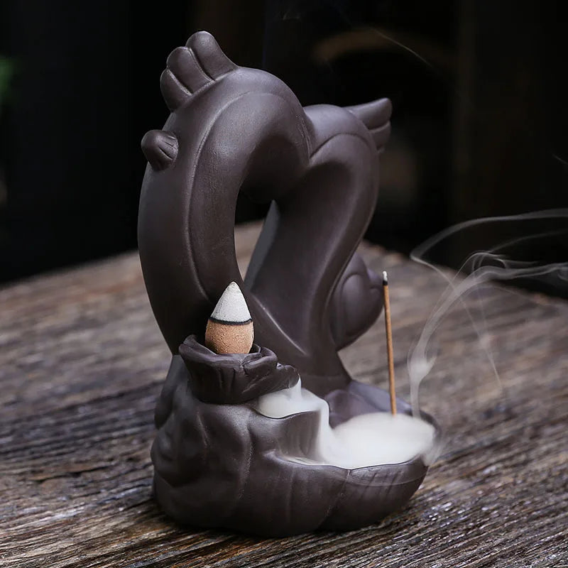 Ambiance Apaisante : Lorsque vous l'utilisez avec des cônes d'encens à reflux, la fumée s'écoule gracieusement en cascade, créant une atmosphère relaxante et sereine, idéale pour la méditation ou les moments de détente.