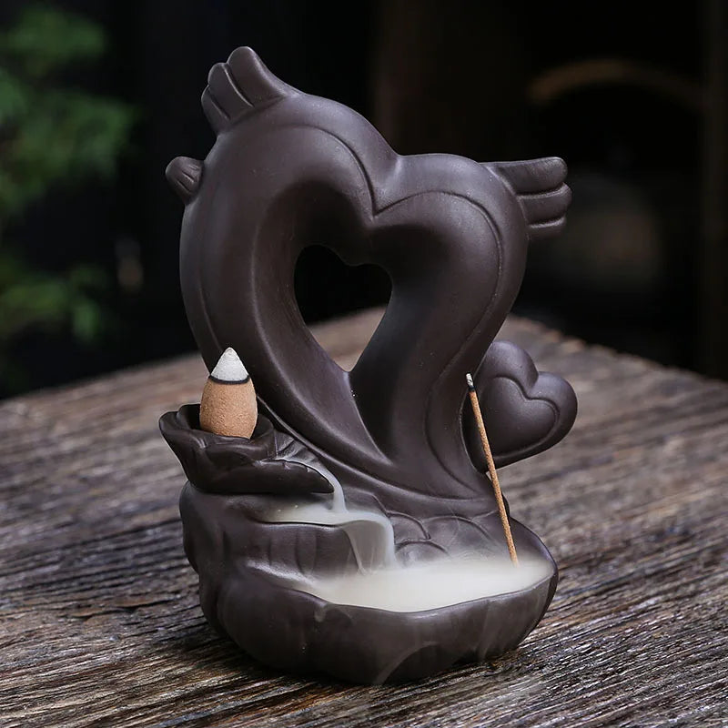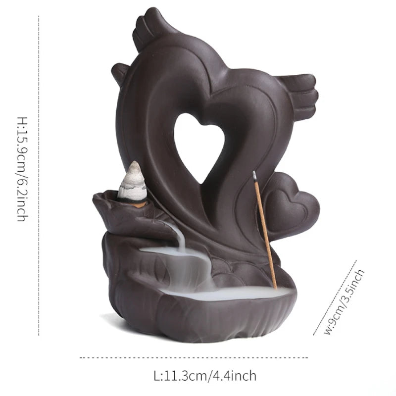 Transformez votre environnement et partagez un message d'amour et de paix avec ce brûleur d'encens à reflux en forme de cœur unique, un véritable atout pour votre bien-être et votre décoration.